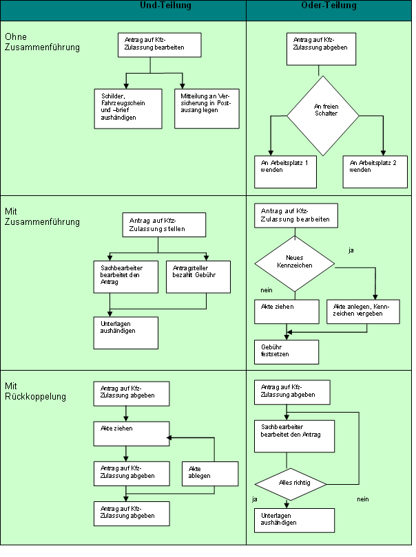 Rückkoppelungen können auch vor- , aber auch nachgeschaltete Stufen weitergegeben werden. Einzelne Stufen in einem Prozess können auch zusammengeführt werden.