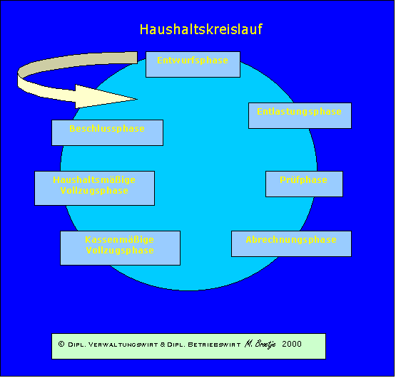 Phasen des Haushaltskreislaufes 1. Entwurfsphase a) die Haushaltssatzung und der Haushaltsplanes aufgestellt, vgl. §§ 78 und 79 GO sowie b) die mittelfristige Planung aufgestellt (vgl. § 84 GO)