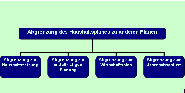 Der Begriff des Haushaltsplanes ist weder in der Gemeindeordnung noch in der Gemeindehaushaltsverordnung definiert. Eine Definition lässt sich aus den Bestimmungen des § 78,II,Nr.1 GO und § 79,II GO sowie § 4,I GemHVO herleiten: Unter dem Haushaltsplan versteht man die nach den Vorschriften der GO und GemHVO zustande gekommene produktorientierte Zusammenstellung aller Erträge und Aufwendungen sowie Einzahlungen und Auszahlungen, die die Grundlage für die Haushaltswirtschaft der Gemeinde ist. Im allgemeinen Sprachgebrauch wird der Haushaltsplan auch als Budget oder Etat bezeichnet. Die Bestimmungen der GO und GemHVO berühren lediglich