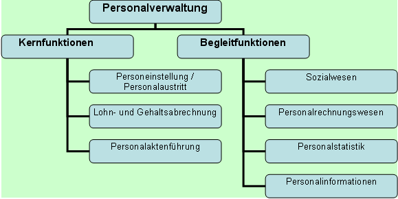 Die Personalverwaltung wickelt administrative Vorgänge und Servicefunktionen zur Erhaltung des Leistungsangebotes des Personals ab, z.B.