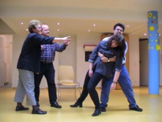 Pressemitteilung Ein echt kölsches DramaVON NORBERT RAMME, 03.03.05, 07:44h Ehrenfeld - Darf man an Wieverfastelovend mit einem Roten Funken rumknutschen? Wohl nicht, wenn man die Ehefrau eines gefeierten Büttenredners ist und der Funk dessen bester Freund. Das Vor- und Nachspiel dieses Fastelovends-Fisternöllchen präsentierten jetzt die Teilnehmer eines „Kölsch-Diplom“-Kurses an zwei Abenden auf der Bühne des Arkadas-Theaters. Zwei Jahre hatten die zwölf „Kölsch-Diplomanden“ um Kursusleiter Rudi Meier (auch Präsident der Kajuja Dellbrück) und Theaterpädagoge Rainer Busch (übernahm die Regie) an dem Theaterprojekt „Döres der Fastelovendsgeck - eine dramatische Liebesgeschichte“ gearbeitet. Die Kurzgeschichte von Mundartdichter und Professor Wilhelm Schneider-Clauss (war zweimal Funken-Präsident: 1923 und 1931 / 32) wurde in eine spielbare Version mit elf Szenen umgeschrieben. Dann wurden verschiedene Theatertechniken ausprobiert, Rollen verteilt und einstudiert, noch acht Komparsen angeheuert sowie Kulissen und Bühnenbild gestaltet. ![]()